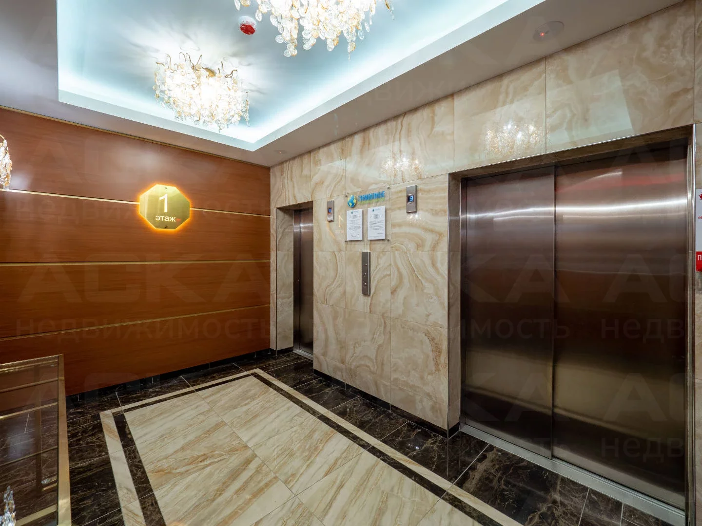 На первом этаже имеется пост консьерж-сервиса с большой зоной для ожидания площадью 150 м2.