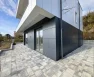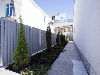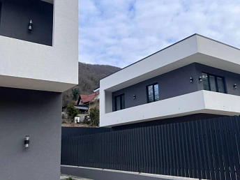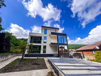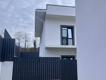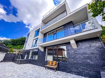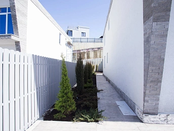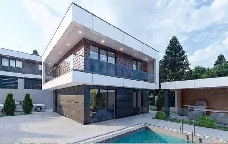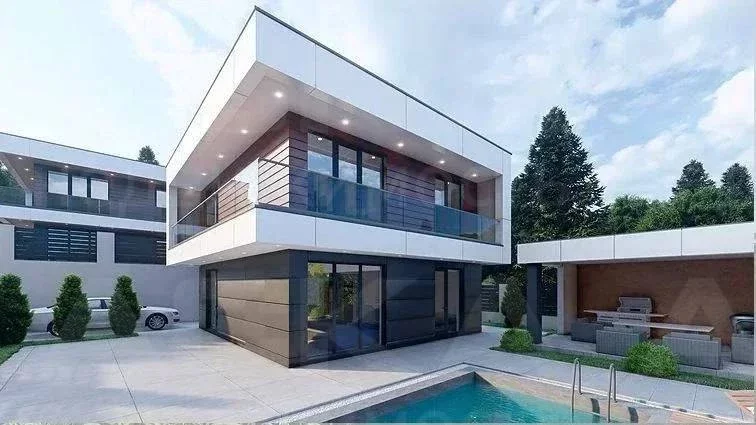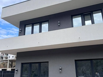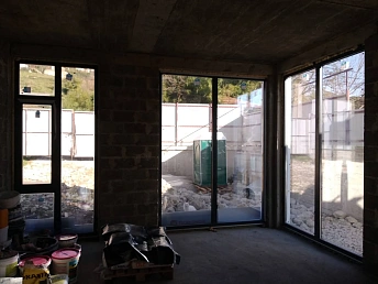 Материал дома: бетонный монолитный каркас, заполнение газоблок, фасад вентилируемый (утеплённый), окна алюминиевые, ограждения стекло, без внутренней отделки, забор по периметру, два парковочных места. Срок строительства : 6-9 месяцев, зависит от участка.