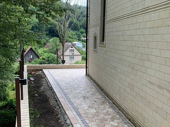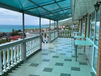 Площадь дома составляет 370 м² , а площадь земельного участка — 6 соток. Населенный пункт Золотой Гребешок отличается удобным расположением: имеется прямой выезд на федеральную трассу, что позволяет добраться до Красной поляны за 25 минут и до Имеретинской набережной за 10 минут.