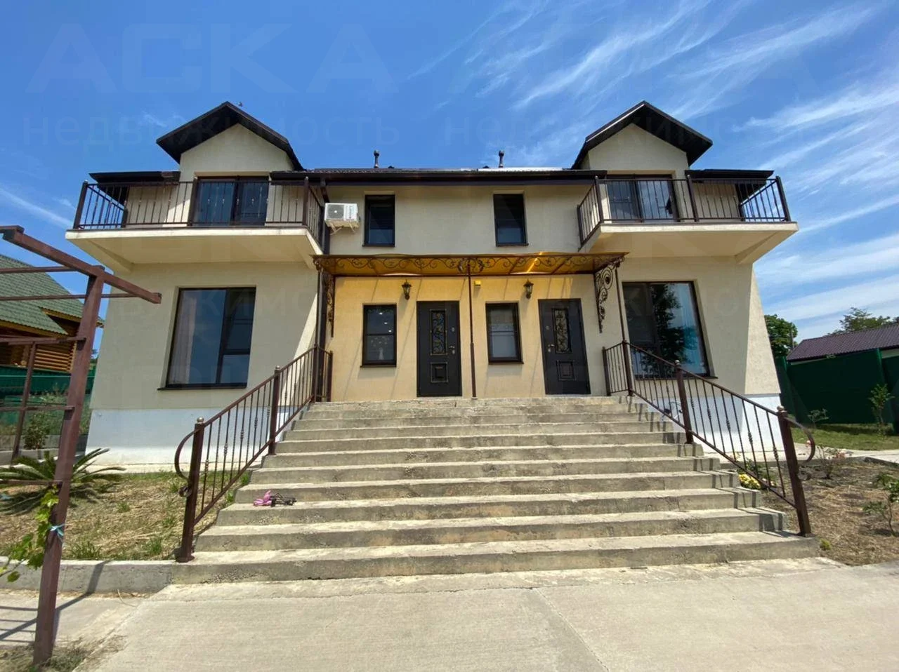 Дом поделен на 2 части: 198 м2 и 70 м2.