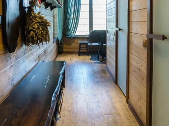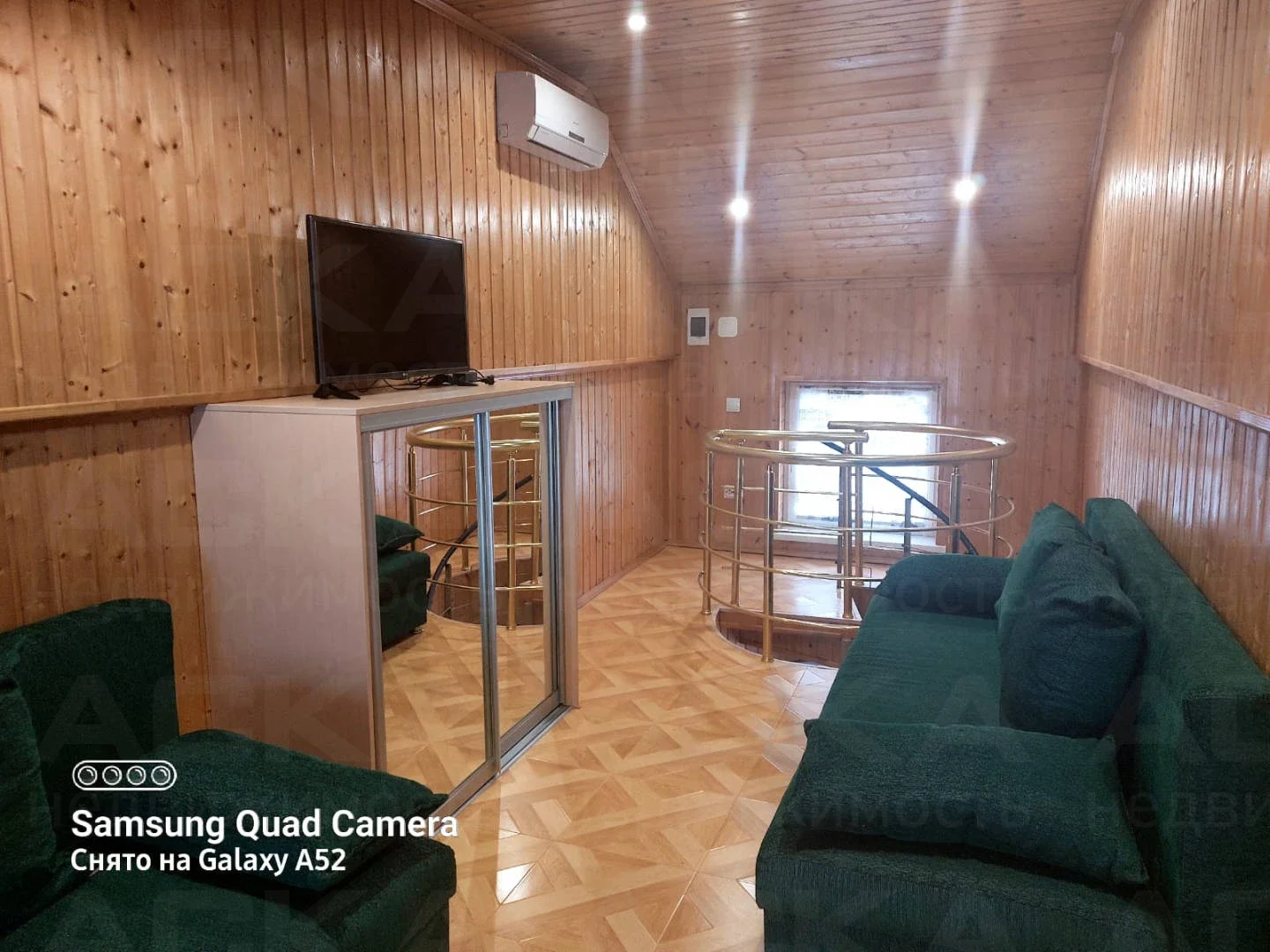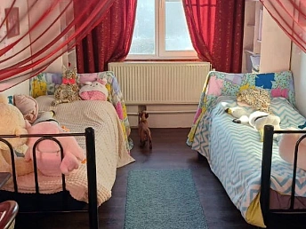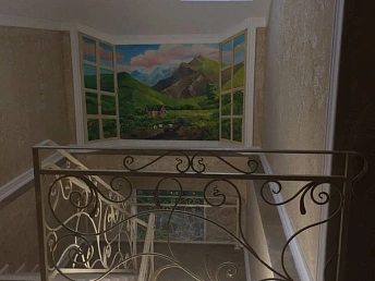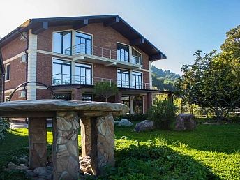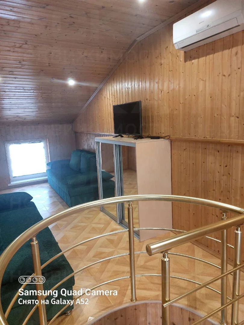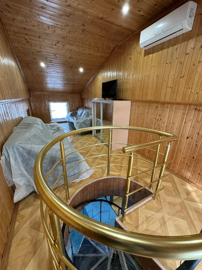 На третьем этаже: мансарда с отдельной комнатой, отделанной деревом, двумя диванами, шкафом и телевизором. В каждой комнате IP-телевидение и кондиционер. Комнаты оборудованы кроватями, тумбочками, шкафами, стульями, столиками, комодами и зеркалами.