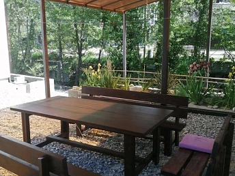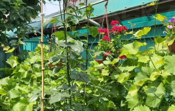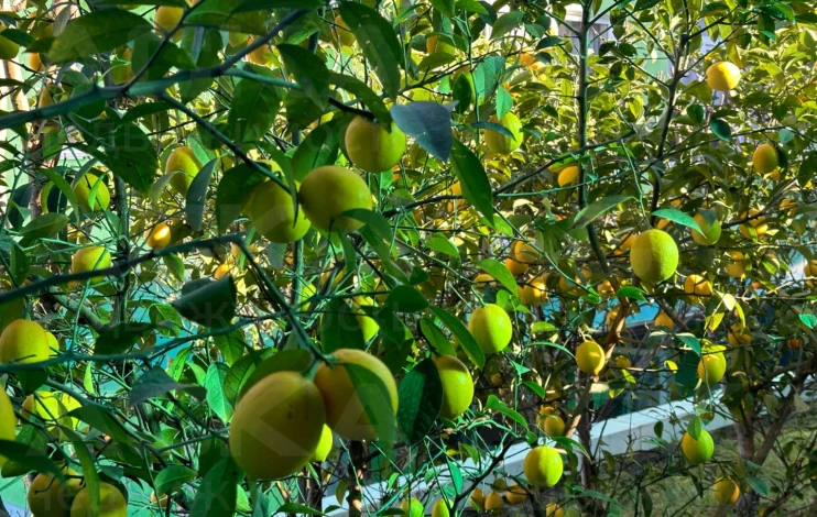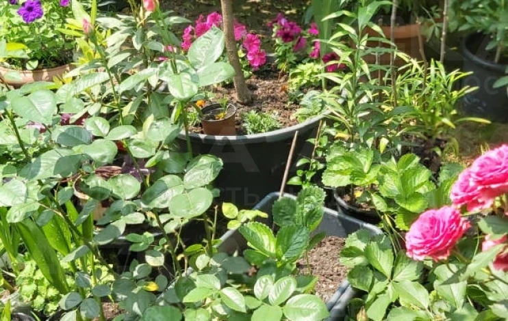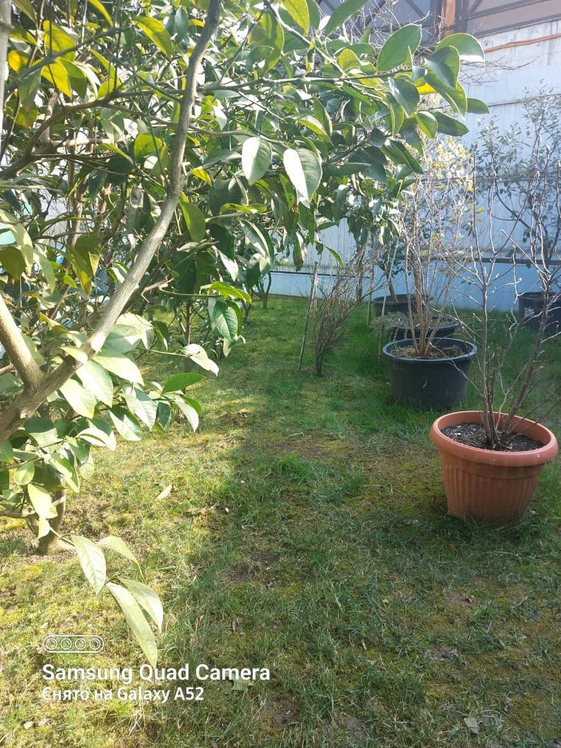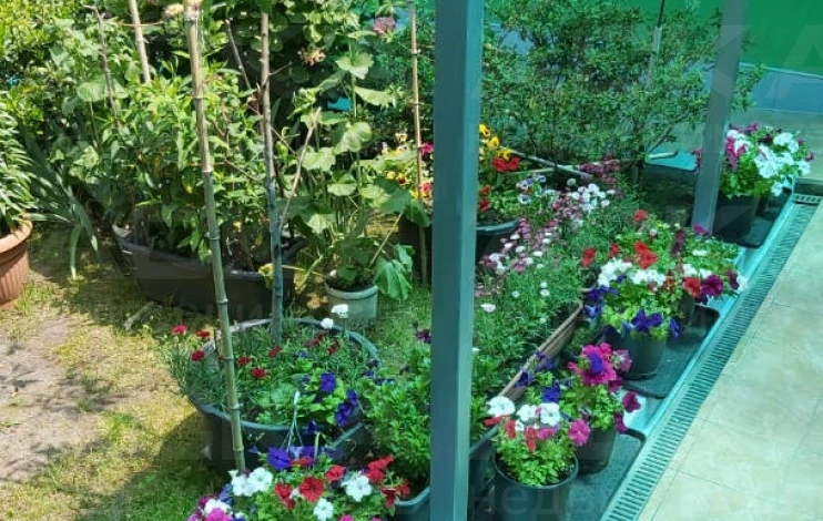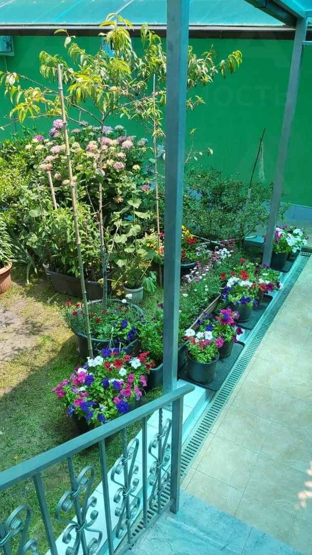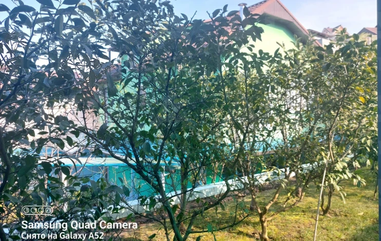 На участке: сад с мандаринами, лимонами, гранатами, киви, фейхоа, хурмой, шарифугой, сливами, грушами, яблонями, персиками, виноградом, черешней и множеством цветов. Ежегодно снимается богатый урожай: более 60 кг хурмы, 20-30 кг лимонов, 20-30 кг мандарин, более 60 кг слив, 50 кг яблок, 50 кг груш, 30 кг киви и т.д. Система автополива с накопителем на 300 литров защищает от отключения воды.