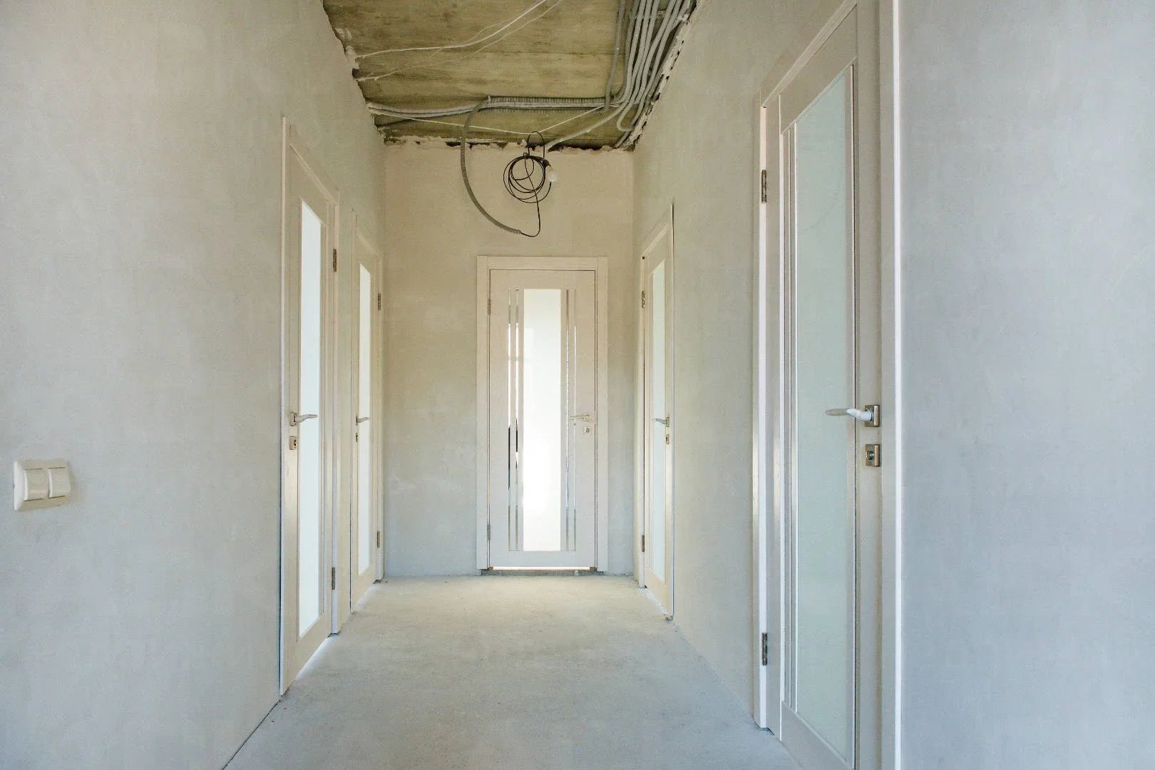 Дом продается в предчистовой отделке, стены выравнены и заштукатурены под обои.