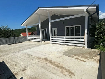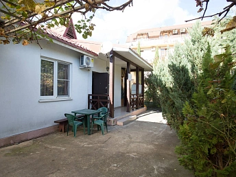 Участок, на котором расположен дом — переменной высотности. Дом построен на верхней части участка. Верхняя часть участка забетонирована — возможно парковка порядка 6 автомобилей на ней. На нижней части участка возможно оборудовать детскую или спортивную площадки. На самом первом этаже дома можно оборудовать еще 4 квартиры/номера для сдачи.