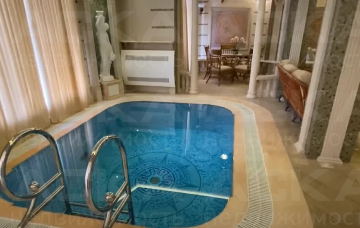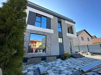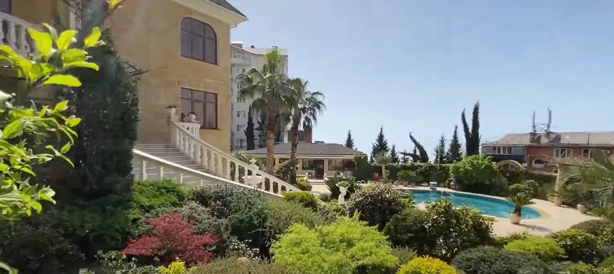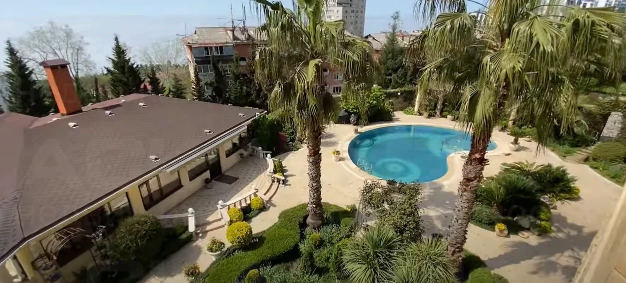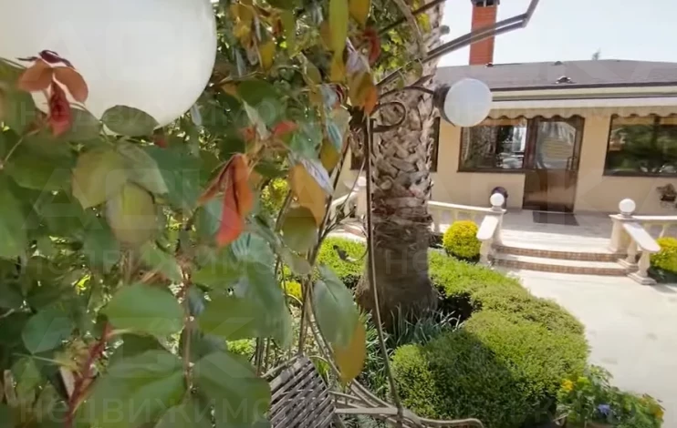 На земельном участке площадью 12 соток, помимо самого дома, также находятся гостевой дом, бассейн, гараж и сад. Территория облагорожена, озеленена и ухожена.