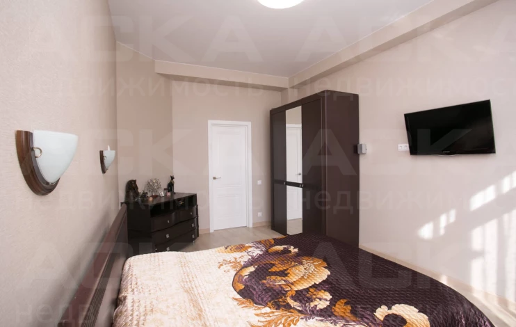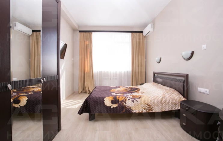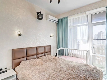 Бесшумные стеклопакеты Schuco, большой балкон с видом на море. Светлая уютная спальня с огромной кроватью из массива дерева, ортопедическим матрацем, постельными принадлежностями. Большой платяной шкаф. Во дворе бесплатная парковка (парковка на цокольном этаже за дополнительную плату), также новым собственником перейдет возможность парковать свой автомобиль на закрытой территории соседнего дома за шлагбаумом!