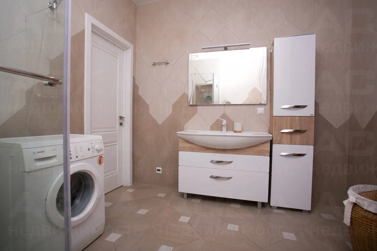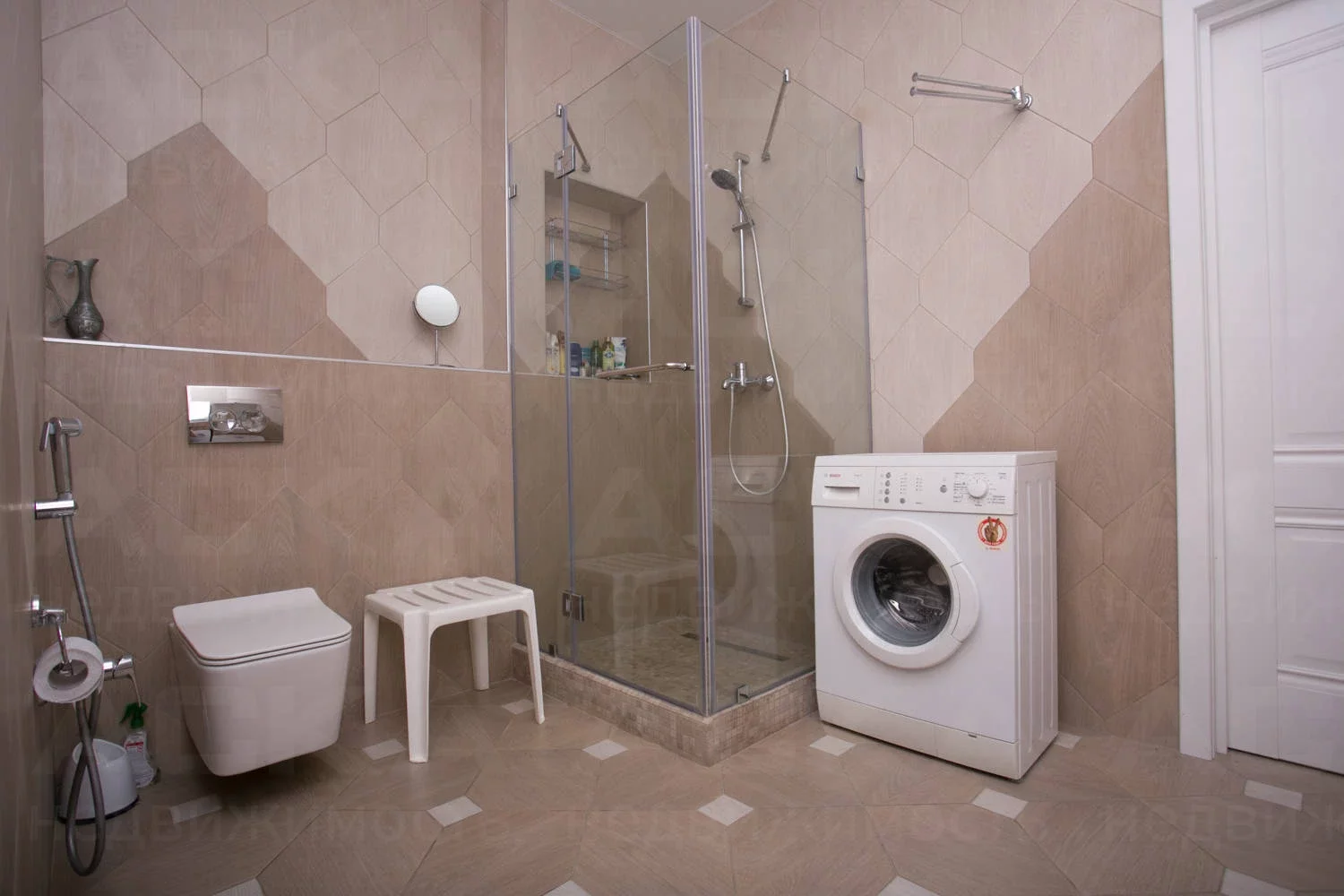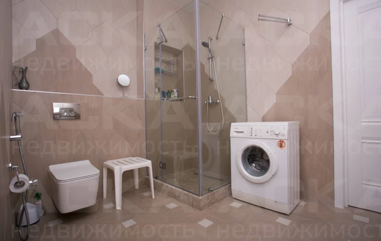 Совмещенный санузел 8 м2, душевая, сантехника GROHE, стиральная машина 8 кг.