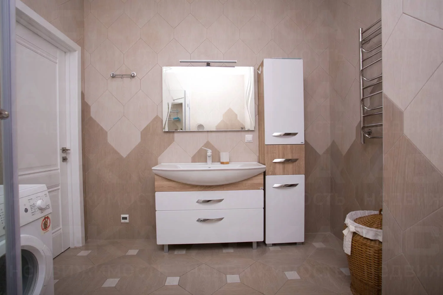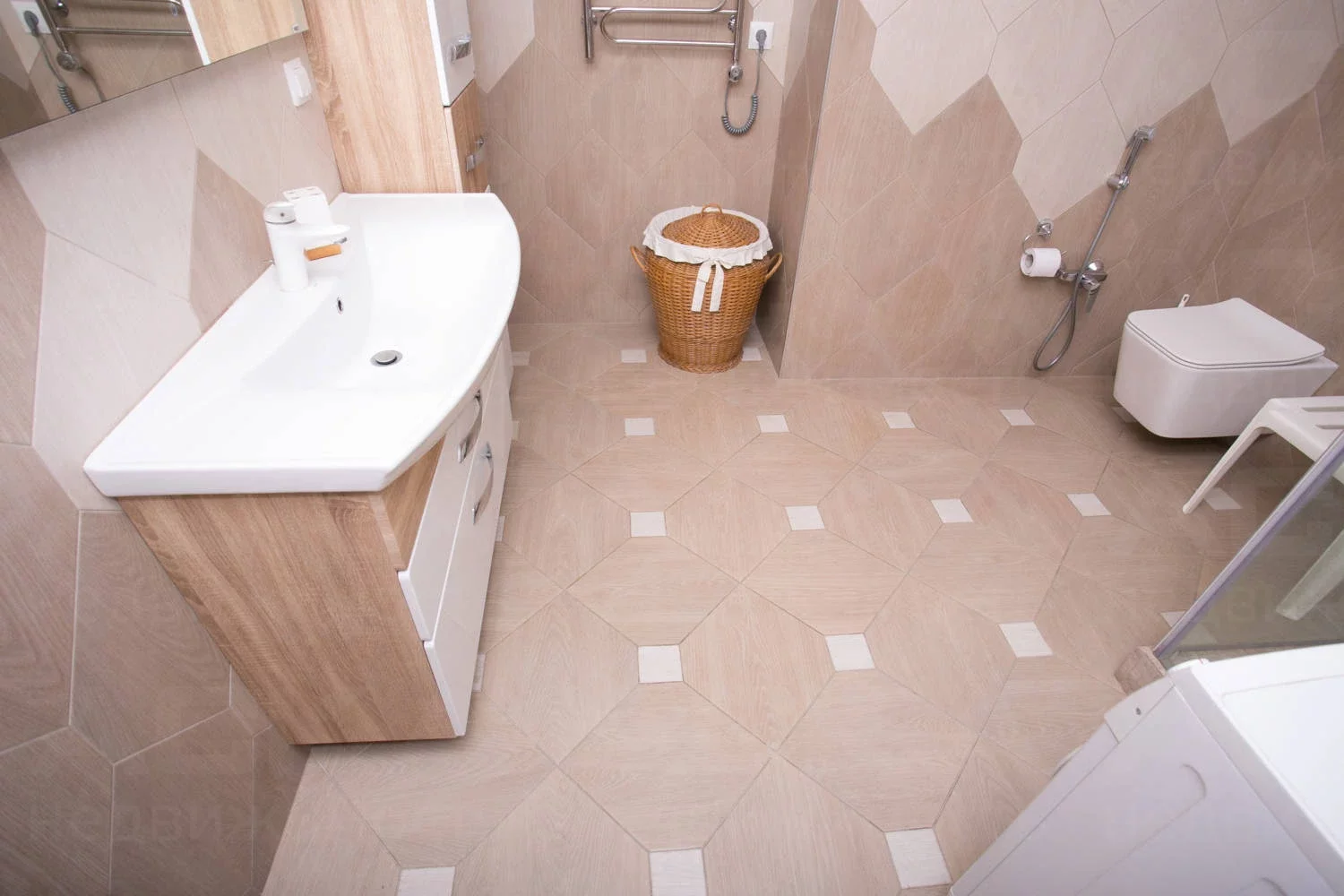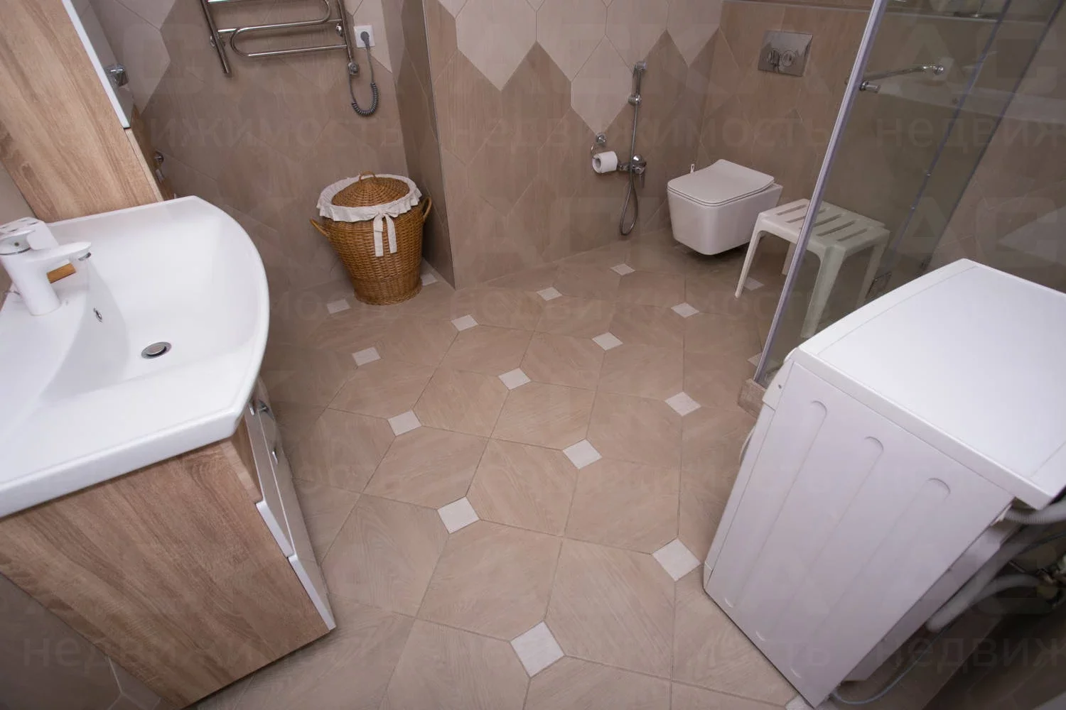 Совмещенный санузел 8 м2, душевая, сантехника GROHE, стиральная машина 8 кг.