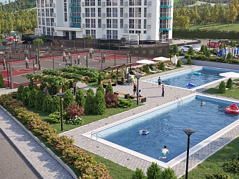 Территория жилого комплекса- 22,9 га с премиальным благоустройством, школа , два детских садика, открытый уличный бассейн, СПА комплекс, беседки и зоны барбекю, точка общественного питания, торгово-развлекательная галерея, теннисный корт, фитнес-клуб. Вход по face-ID и умные домофоны, система умный дом. Два паркинга — многоуровневый и подземный.