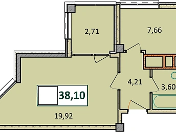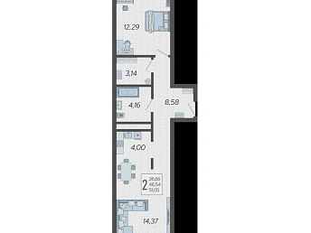 Двухкомнатная квартира S 53.92 м² на 13 эт., р-он КСМ, Лот № 180415