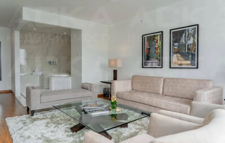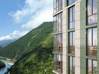 Продаю просторную квартиру, с огромными окнами от пола до потолка и великолепными видами на горы, реку и зеленый город в эксклюзивном жилом комплексе бизнес-класса, имеющим свою набережную 1,2 км вдоль реки Сочи. Квартира идеально спланирована в кухню-гостиную и две спальни с двумя санузлами.