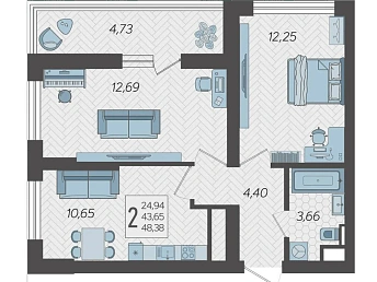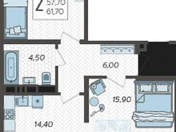 Квартира двухкомнатная S 55.1 м² на 1 эт., ремонт Под отделку, р-он Адлер, Лот № 157129