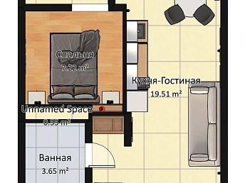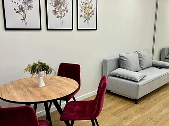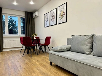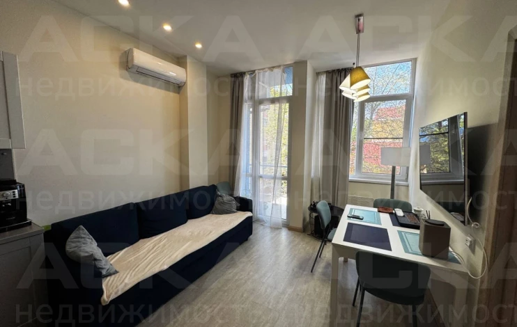 В квартире есть все необходимое для комфортной жизни: встроенная кухня с бытовой техникой (холодильник, плита, духовка, микроволновая печь), мебель (диван, кровать, шкафы), кондиционер и система отопления. Окна выходят во двор, что обеспечивает тишину и спокойствие.