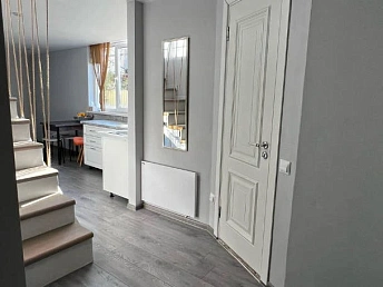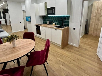 Квартира полностью отремонтирована с использованием качественных материалов: современные обои, ламинат на полу, натяжные потолки с точечным освещением. Ванная комната и кухня выполнены в современном стиле, установлена новая сантехника и качественная мебель.