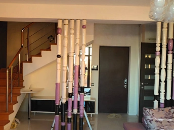 Квартира подготовлена под чистовую отделку: стены оштукатурены, сделана разводка электричества и коммуникаций, обустроен тёплый пол. Установлены новые стеклопакеты, заменены двери. Отопление осуществляется от газового котла.