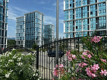 Рядом с домом есть детские площадки и место, где можно пожарить шашлык. Ещё рядом есть парковка. Этот район недалеко от центра Сочи. Здесь чистый воздух.