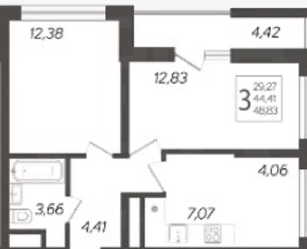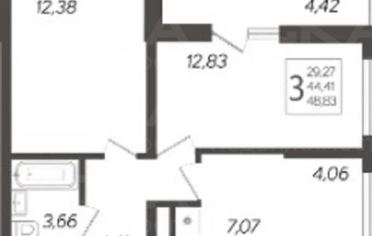 Двухкомнатная квартира S 48.83 м² на 2 эт., р-он Бытха, Лот № 179763