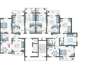 Двухкомнатная квартира S 63.18 м² на 3 эт., р-он КСМ, Лот № 177185