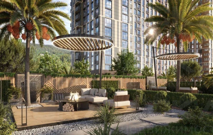 Изящный дуэт в современном стиле органично интегрирован в концепцию застройки и природного горного ландшафта.