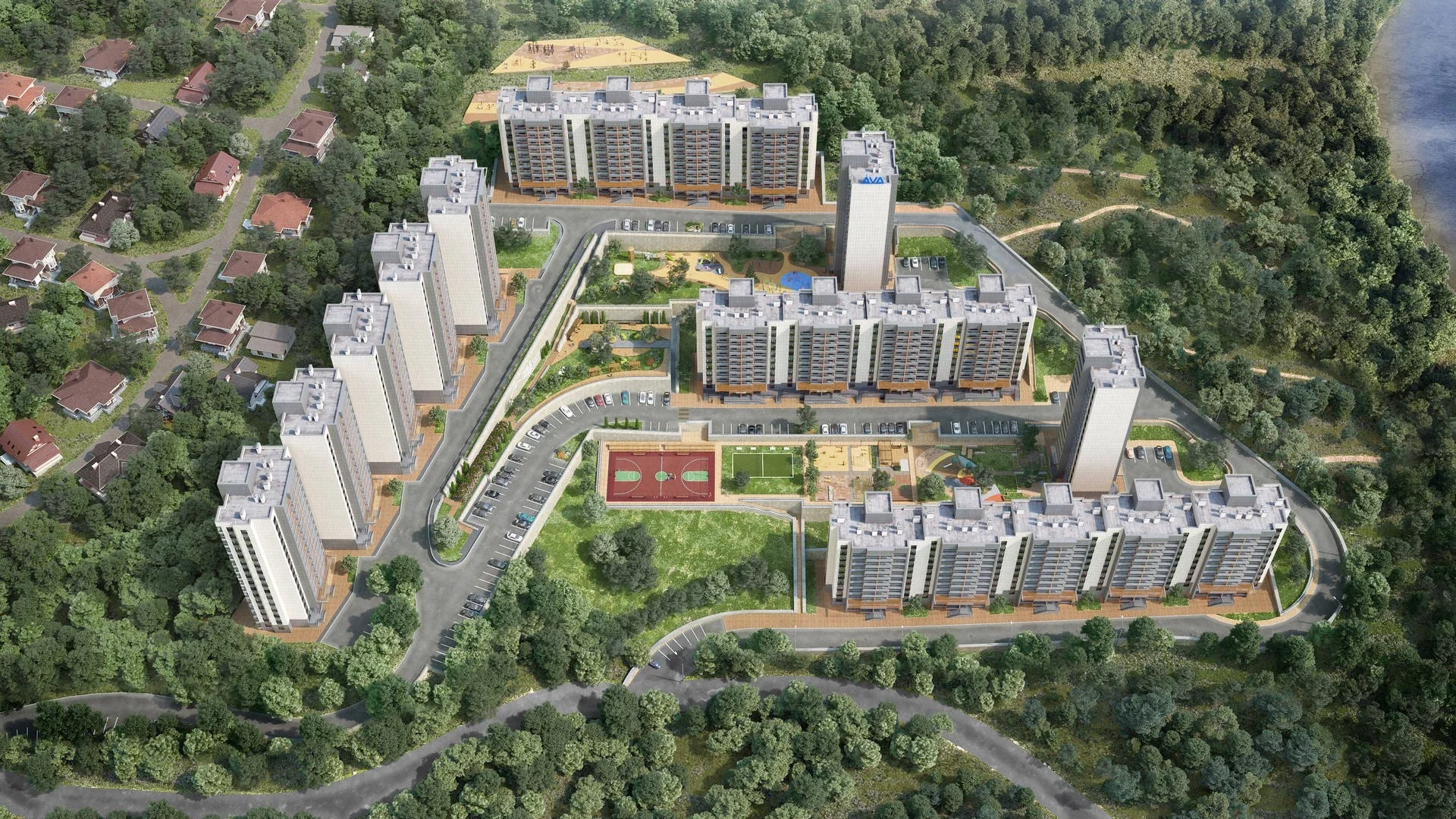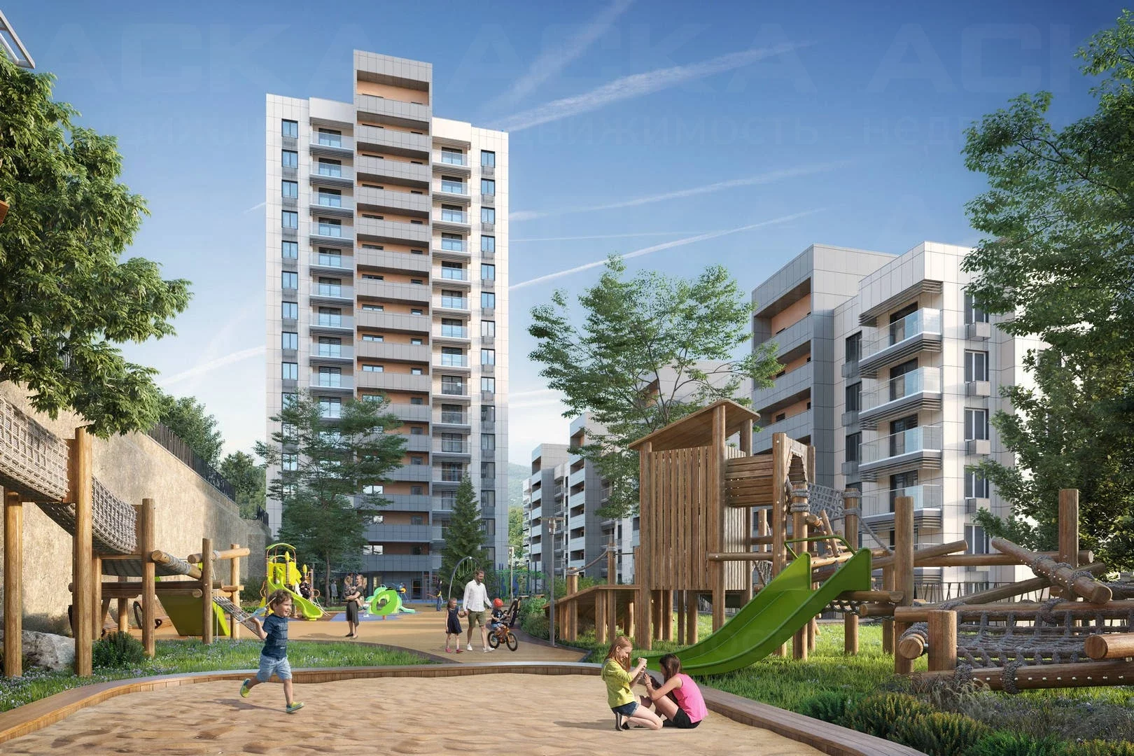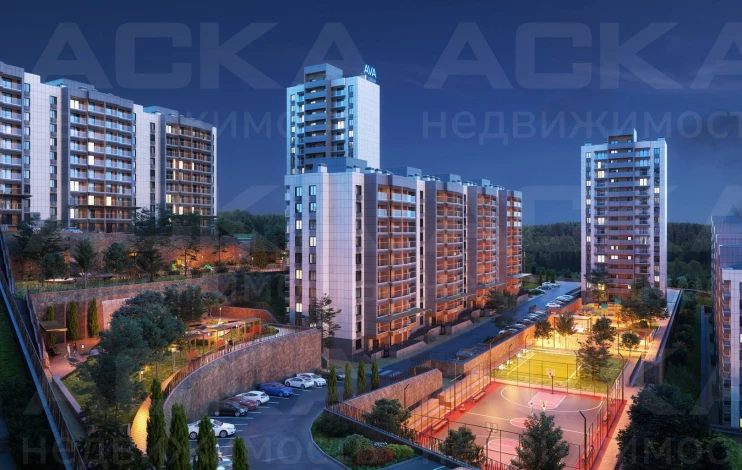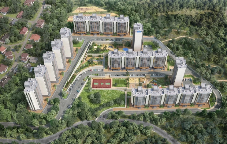 На склоне горы в прекрасном районе Сочи расположились шесть домов высотой 10-16 этажей. Квартал гармонично вписался в окружающую среду, занятую лесными массивами, и обладает благоприятной розой ветров и удобными транспортными развязками. Благоустройство территории предусмотрено только на части, где размещены здания, проезды и игровые площадки, тогда как остальная территория останется в первозданном состоянии. Этот жилой комплекс идеально подходит как для летнего отдыха, так и для постоянного проживания семей с детьми. Школы, детские сады, поликлиники и автобусные остановки находятся все в шаговой доступности от комплекса. А на первых этажах зданий будут расположены магазины и уютные кафе для удобства жителей. Наслаждайтесь прекрасным видом на окружающие горы и леса!