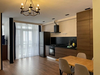 Общая площадь 55,4 м2 с учетом балкона: уютная кухня-гостиная, обеденная зона, две отдельные спальни, два санузела и гардеробная. Квартира укомплектована бытовой техникой от ведущих мировых производителей. Все материалы, используемые в отделке, отличаются отменным качеством.