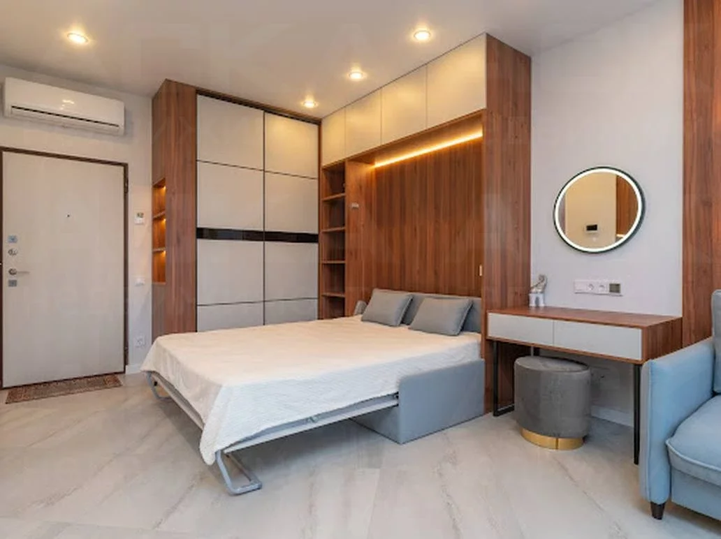 На фотографиях пример ремонта по нашему дизайн проекту со встроенной мебелью.