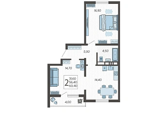 Квартира 2 комн., S 82.5 м² на 1 эт., ремонт Евростандарт, р-он Центр, Лот № 179811