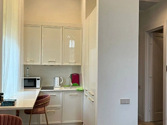 Удобная инфраструктура территории: личный бассейн, супермаркет, кафе, охраняемая территория, зеленая прогулочная зона с детскими и спортивными площадками. Премиальный уровень обслуживания дома делает вашу жизнь комфортной и безопасной.