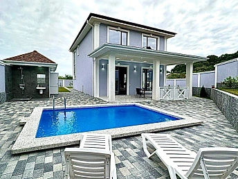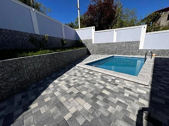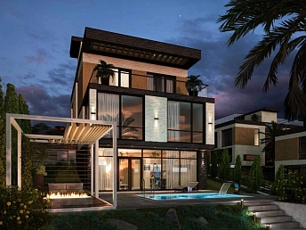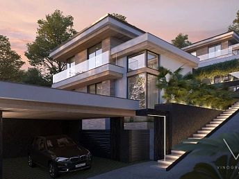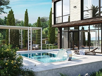 Двухэтажные дома в стиле шале, с монолитным каркасом и блочным заполнением. С видом на море!На придомовой территории установлен бассейн, выполнен ландшафтный дизайн. Электрические раздвижные ворота.