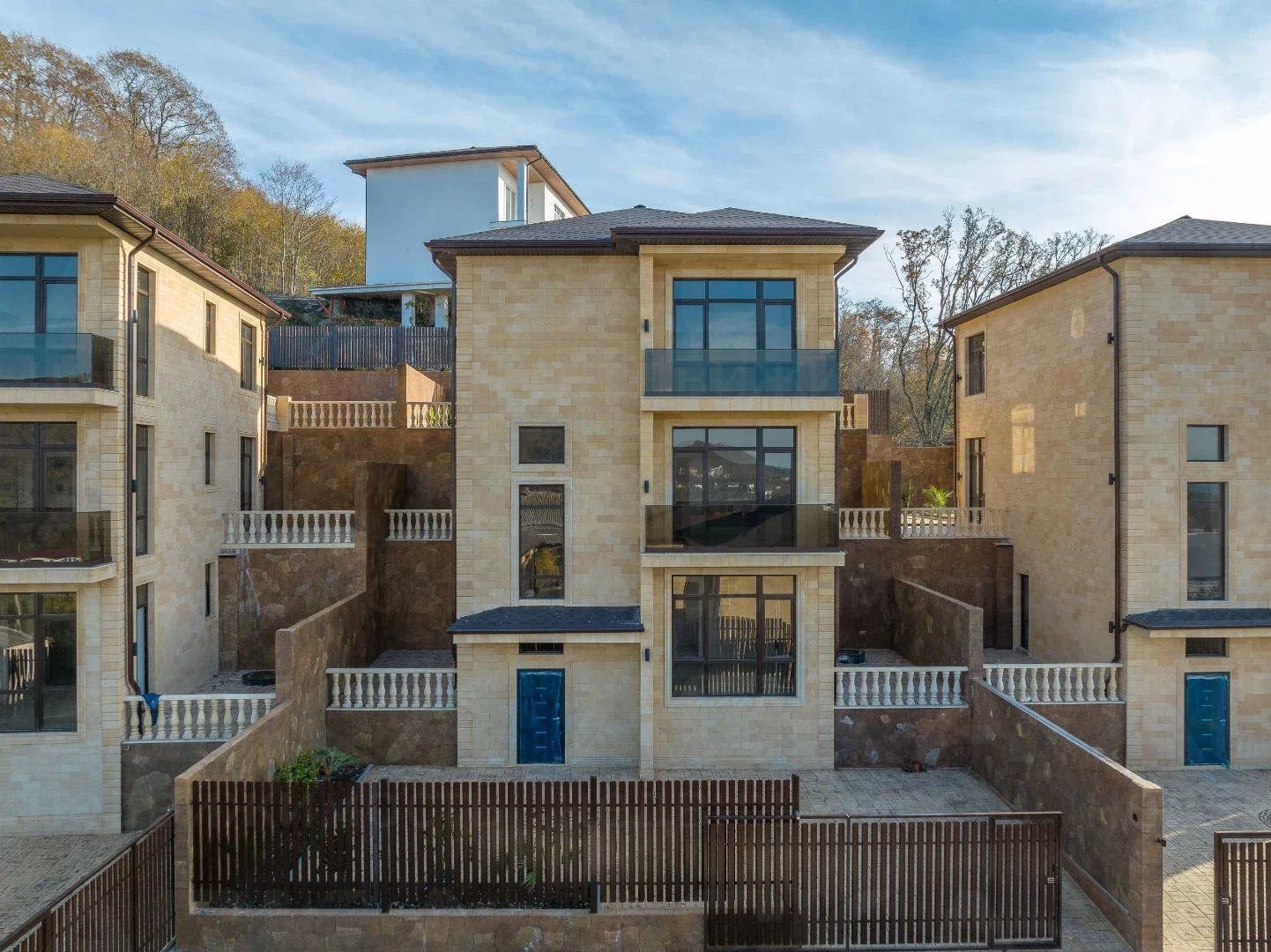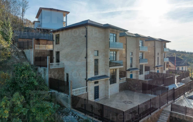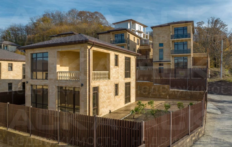 Единый архитектурный стиль: Весь посёлок выдержан в едином архитектурном стиле, обеспечивая гармонию и стиль в каждом доме. Фасады зданий отделаны высококачественным Дагестанским камнем, что придает им уникальный и роскошный вид. Озеленение на каждом участке создает атмосферу комфорта и заботы о природе. Панорама на море, лес и горы открывается уже с первого этажа, предоставляя неповторимый вид на окружающую красоту.