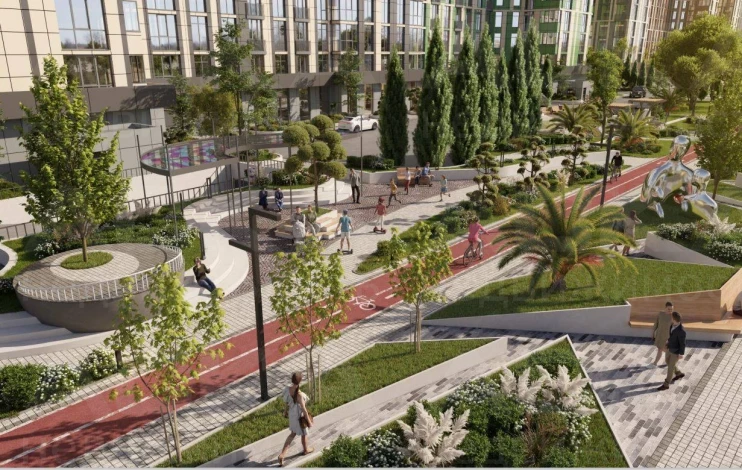 Территория жилого комплекса- 22,9 га с премиальным благоустройством, школа , два детских садика, открытый уличный бассейн, СПА комплекс, беседки и зоны барбекю, точка общественного питания, торгово-развлекательная галерея, теннисный корт, фитнес-клуб. Вход по face-ID и умные домофоны, система умный дом. Два паркинга — многоуровневый и подземный.