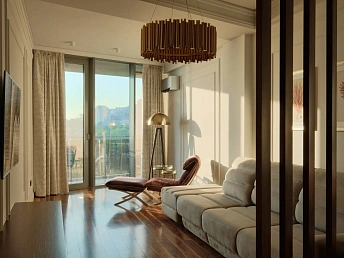 Продаю просторную квартиру, с огромными окнами от пола до потолка и великолепными видами на горы, реку и зеленый город в эксклюзивном жилом комплексе бизнес-класса, имеющим свою набережную 1,2 км вдоль реки Сочи. Квартира идеально спланирована в кухню-гостиную, зал и и две спальни с двумя санузлами.