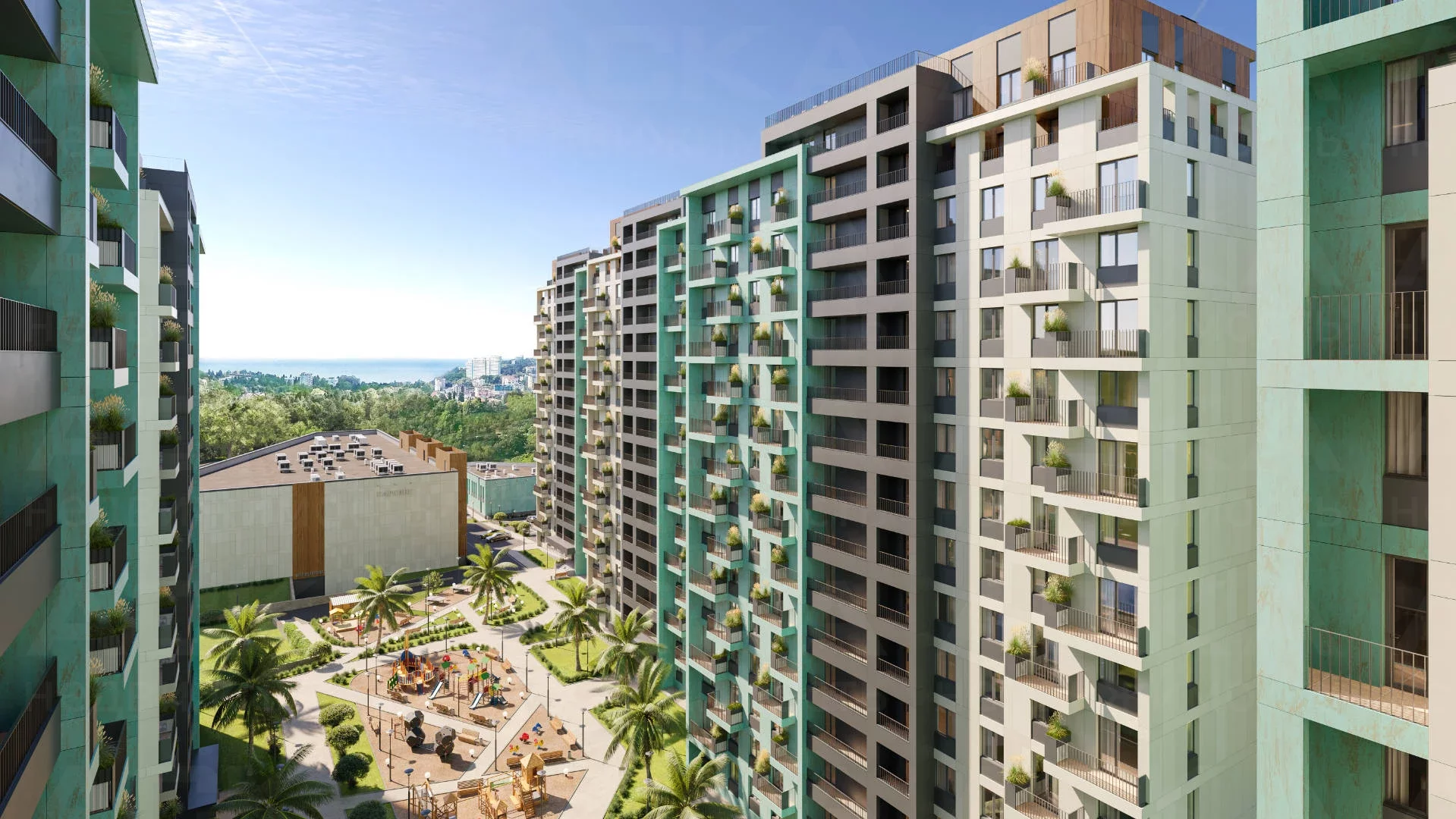Жилой комплекс располагается вдоль долины реки Восточный Дагомыс в зеленой и экологической зоне с видом на чайные плантации, море и горы, с удобной транспортной развязкой.