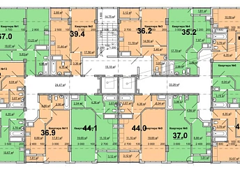 - На типовом расположено 10 квартир 20,5 кв. м- 47,5 кв. м