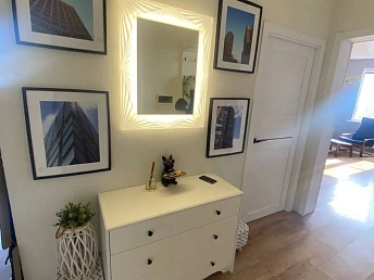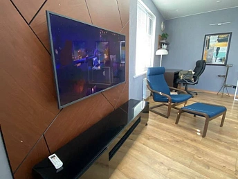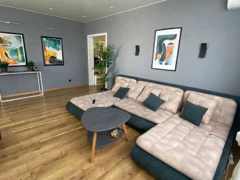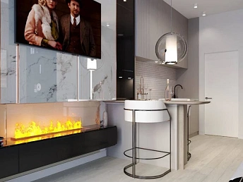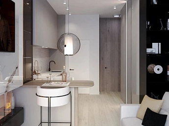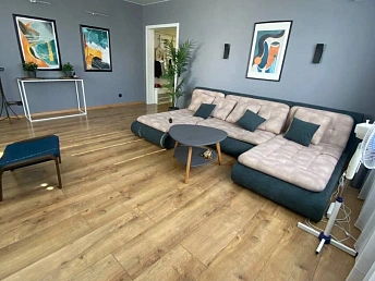 - Квартиры в комплексе выставлены на продажу с разной степенью отделки: чистовой, типовым ремонтом (ламинат, обои, плитка в санузле, кухне и прихожей, сантехника) и мебелью