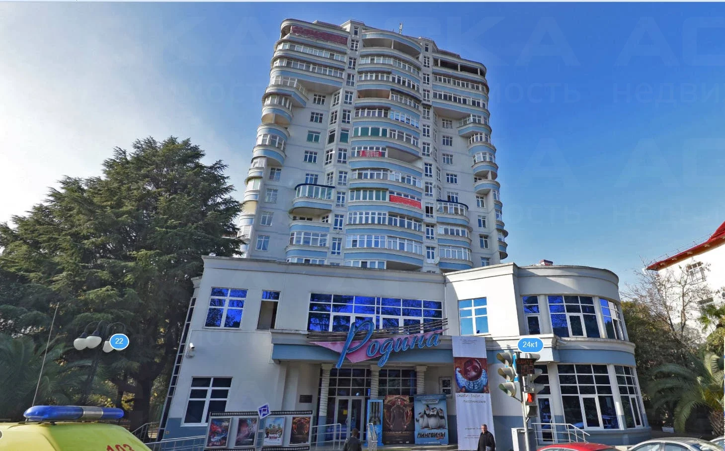 Современный многоквартирный комплекс бизнес-класса Родина расположен в микрорайоне Заречный на улице Красноармейская. Комплекс представляет собой 17-этажное монолитное здание, построенное по современным строительным технологиям. Площадь квартир, предлагаемых к продаже от 155 до 176 кв.м. Просторные квартиры функциональной планировки. Все квартиры с ремонтом. Прекрасные видовые характеристики (на море, горы и город). В каждой квартире есть открытый балкон. На первом этаже дома расположены коммерческие площади (банк, кинотеатр, кафе и др.). Новостройка находится в 5 минутах ходьбы от общеобразовательной школы, детского сада и станции скорой помощи. От дома до благоустроенных пляжей менее 1000 метров. Немаловажным преимуществом дома является и то, что он расположен в деловом центре города, имеет собственный подземный паркинг и благоустроенную территорию. Рядом находится городской парк Ривьера, рынок, ТРЦ Александрия, магазины, остановки общественного транспорта. Удобные подъездные пути - с улицы Гагарина и Красноармейской.