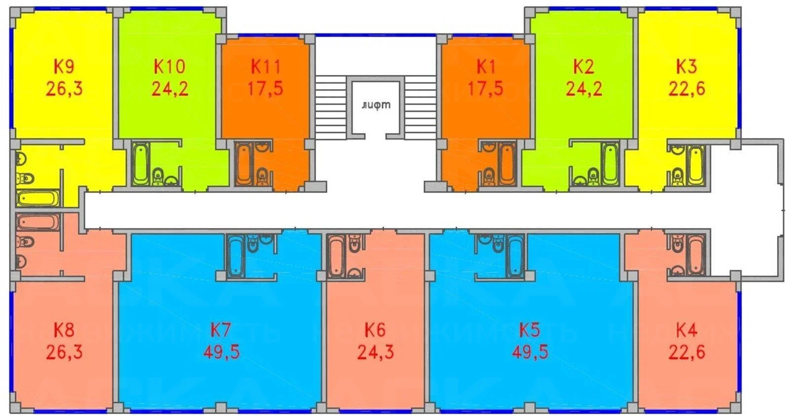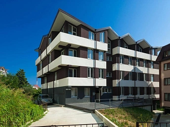 6-этажный дом с паркингом находится в центральном Сочи, микрорайон Мамайка.