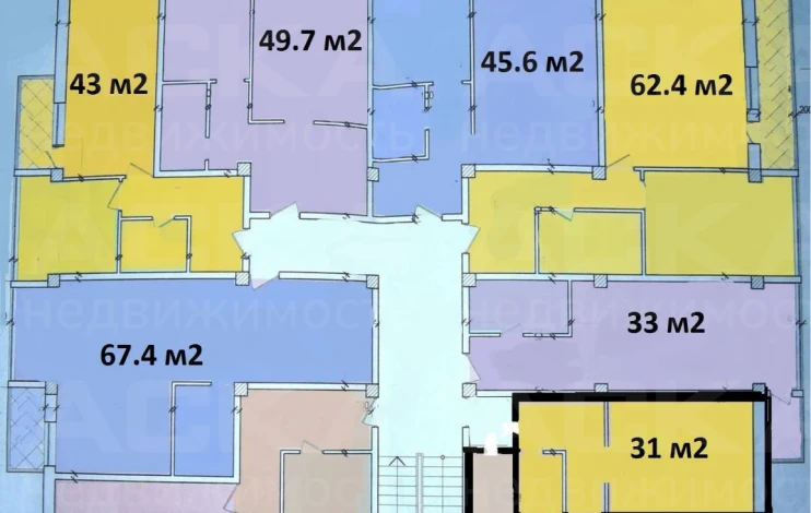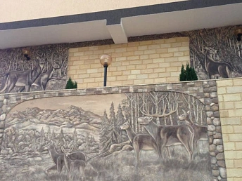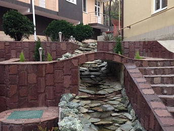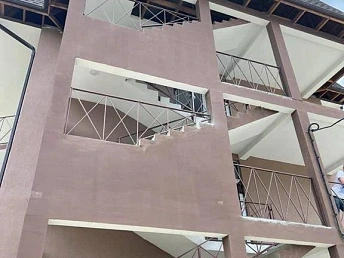 Монолитная застройка здания, внешняя отделка комплекса — декоративная штукатурка.