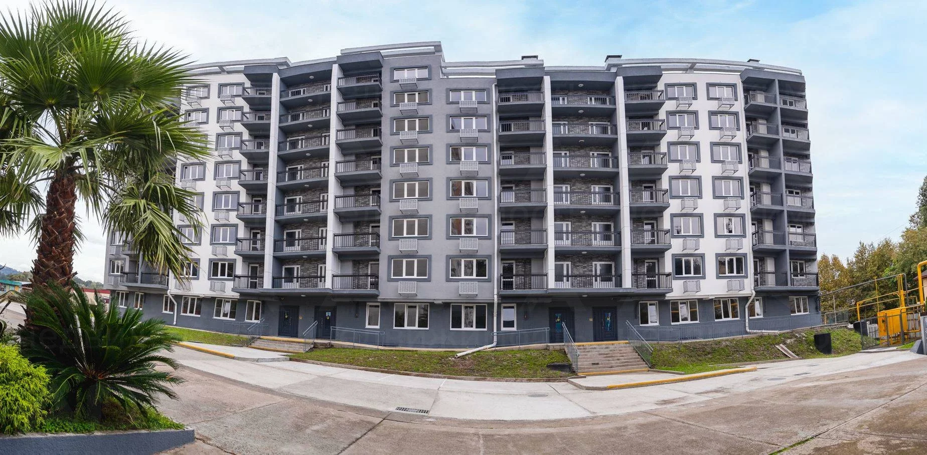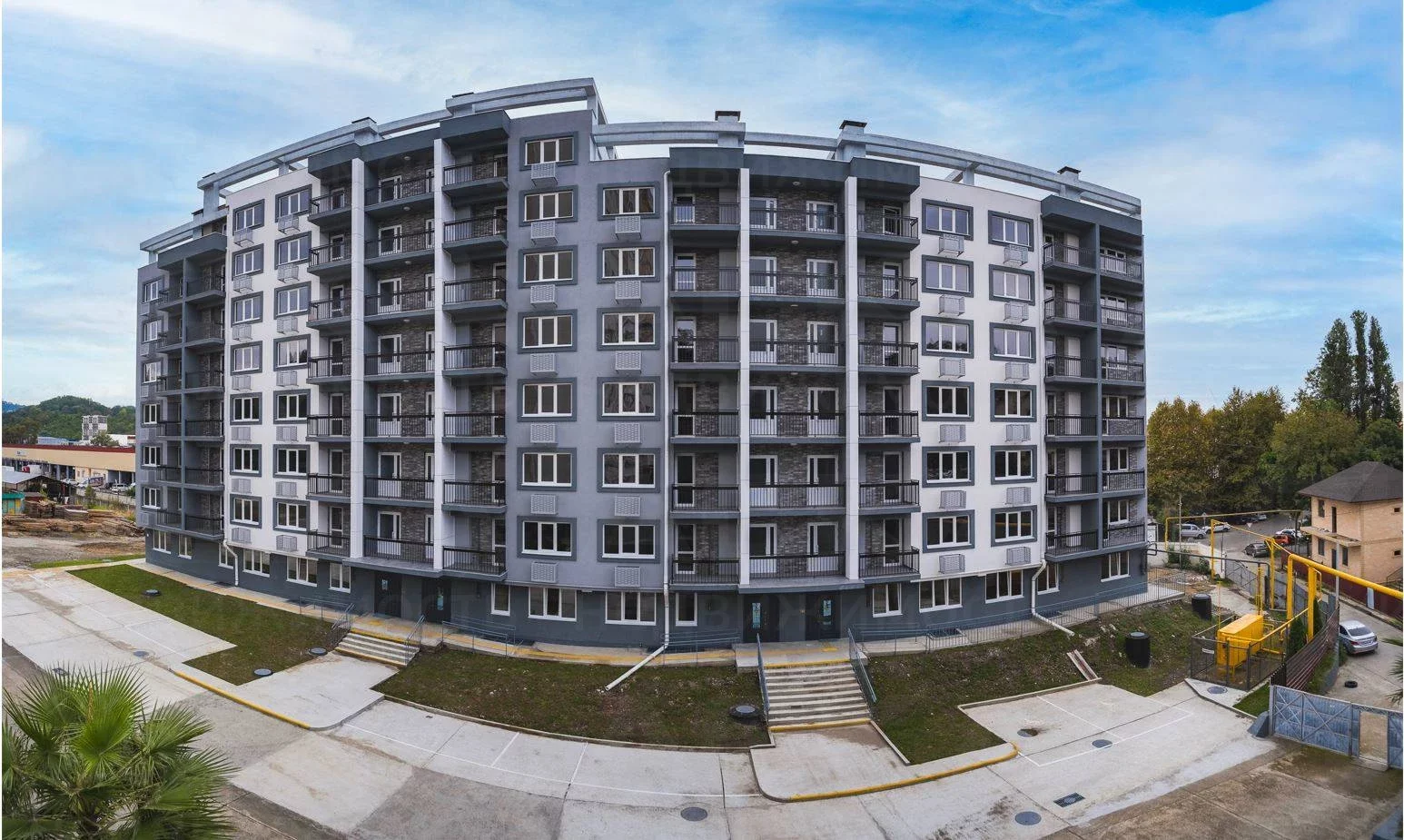 Многоквартирный жилой комплекс находится в районе с развитой инфраструктурой. Расстояние до школы и детского сада-700 метров. В шаговой доступности вы найдете различные магазины, салоны красоты, точки общепита, рынки и т.д. Отличная транспортная доступность, остановка общественного транспорта в 200 метрах от дома. Прогулка длительностью 30 минут приведет вас к морской набережной.
