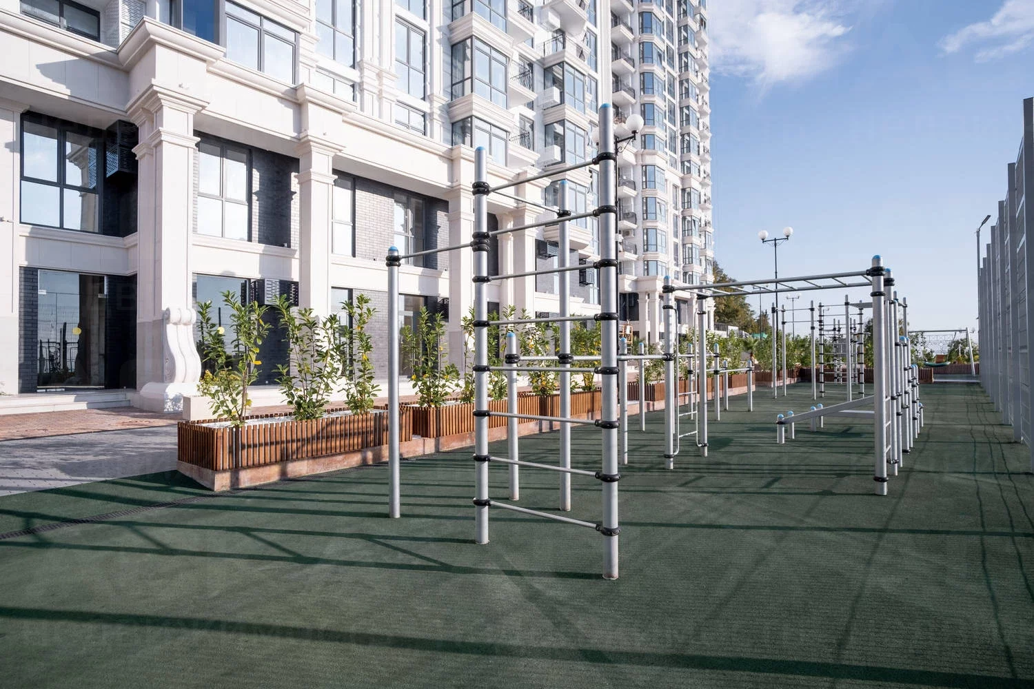 Если нужно ехать на общественном транспорте, то до ближайшей остановки необходимо пройти всего 200 метров. Внутренняя инфраструктура комплекса включает: 2 парковки — гостевую и для жильцов на 360 парковочных мест, бассейн с видом на Чёрное море, тренажёрные залы, магазины, кафе и рестораны, детские развлекательные площадки.