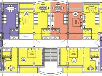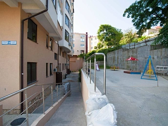 В доме — 160 квартир с разными типами планировочных решений. Площади варьируются от 20 до 42 квадратных метров. Большая часть квартир с балконами. Панорамные окна открывают виды на горы и город. К продаже квартиры представлены с предчистовой отделкой.