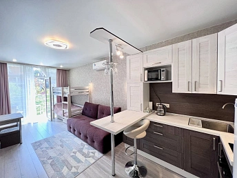 В шаговой доступности работает несколько магазинов, муниципальный детский сад, лицей №22. Рядом с домом остановка автобусов №44 и №92. До моря вы дойдете прогулочным шагом за 20 минут. До делового центра Сочи 10 минут езды.