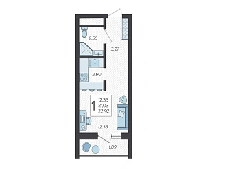 Квартира однокомнатная S 36.3 м² на 6 этаже, Лот № 174616
