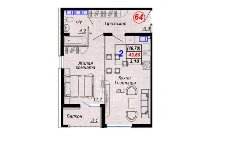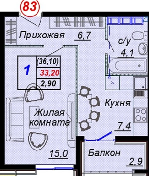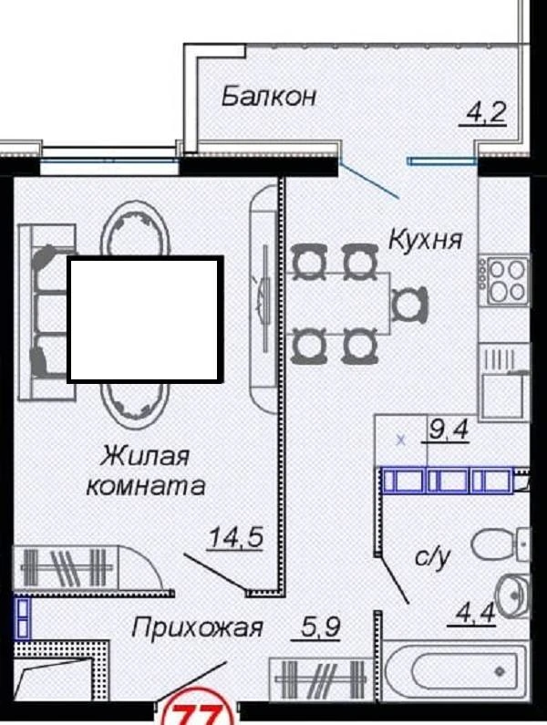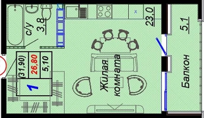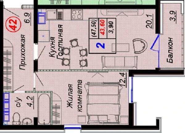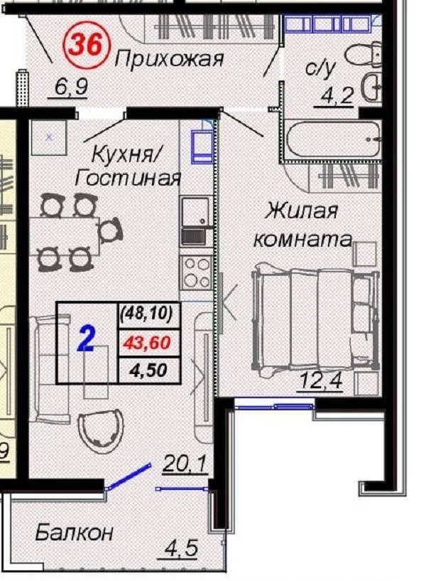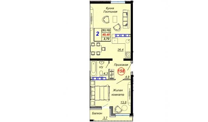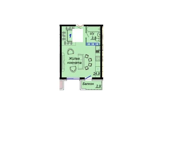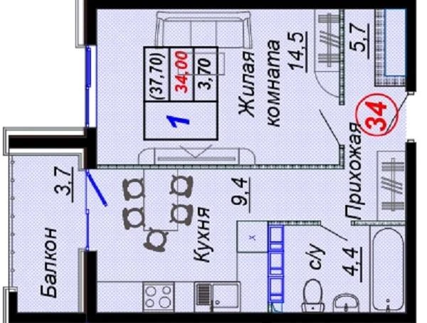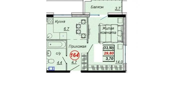 Квартира однокомнатная S 38 м² на 14 этаже, Лот № 176204