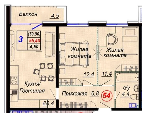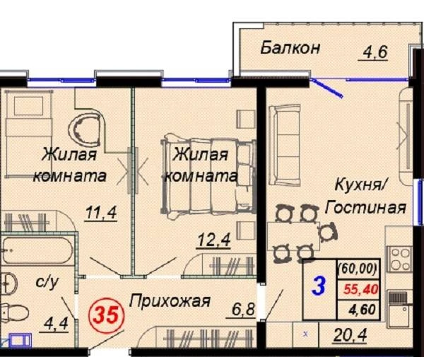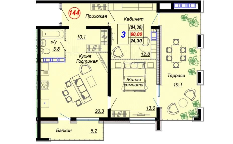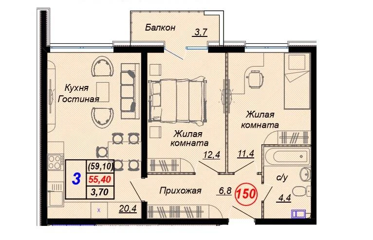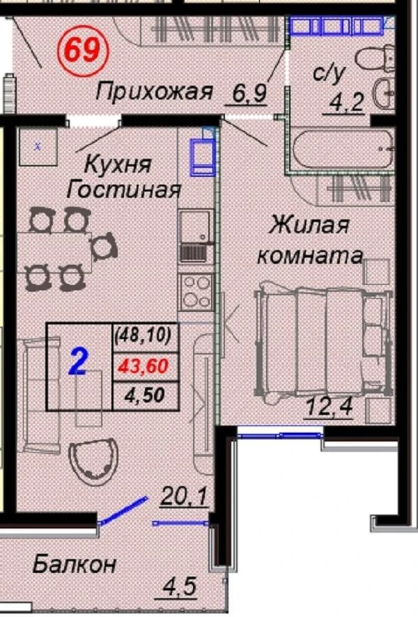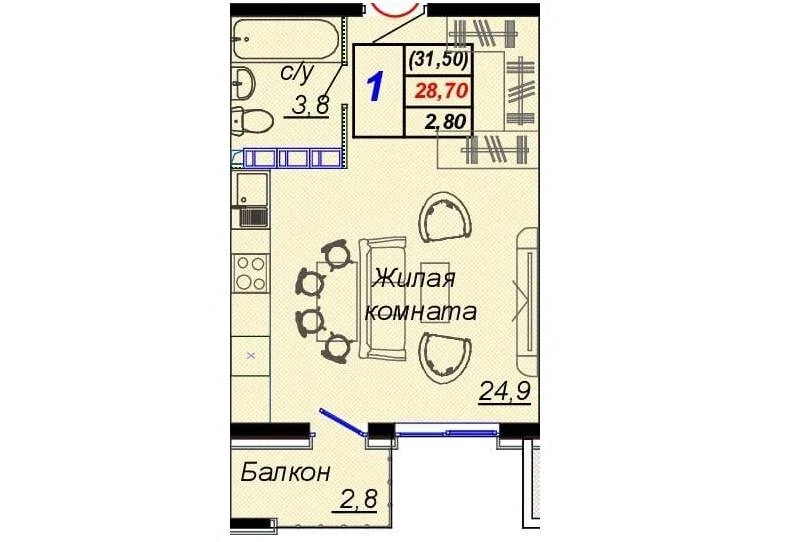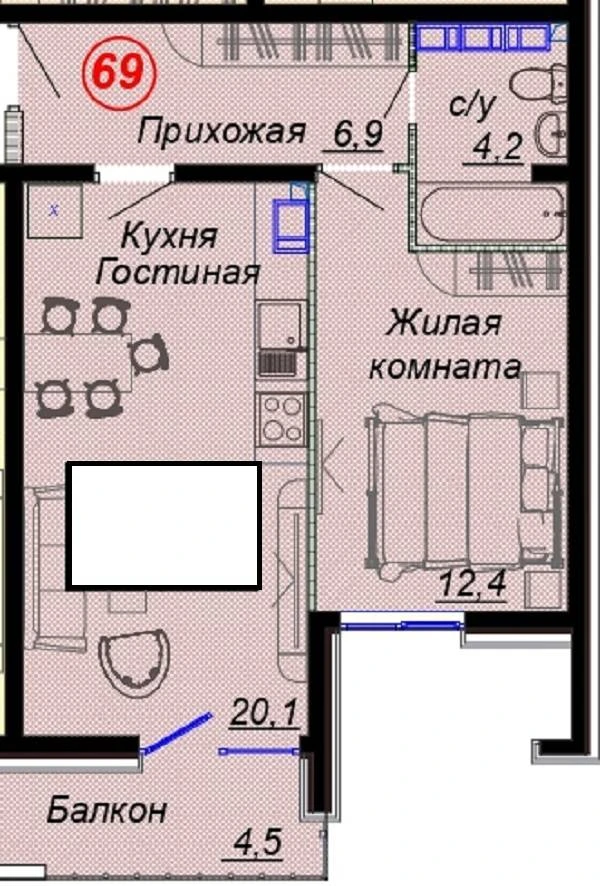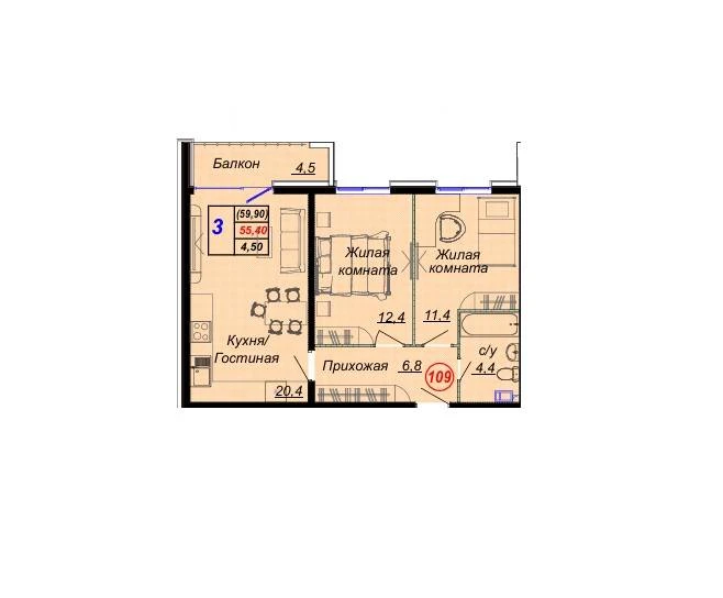 Квартира однокомнатная S 38 м² на 14 этаже, Лот № 176204