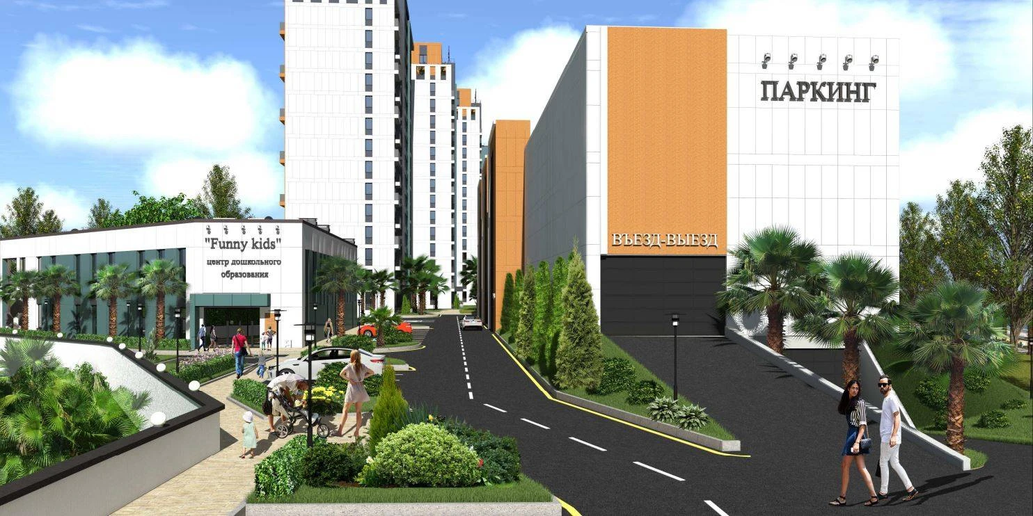 На территории комплекса есть паркинг четырехуровневый, шесть детских площадок, две спортивные площадки. Площадь под ЖК Чайные холмы 3 га.