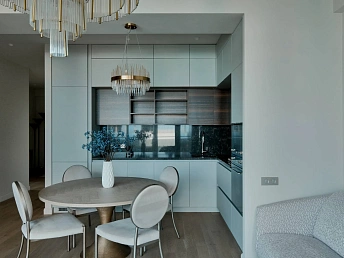 Апартаменты с ремонтом, мебелью и техникой под ключ. Есть лоджия, практически из всех номеров вид на море и горы. На территории находятся два бассейна, сауна, фитнес-центр, массажный кабинет, детский городок и батутный центр. Есть зона барбекю.