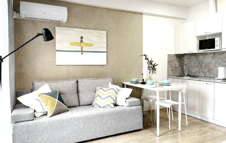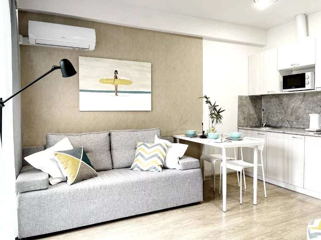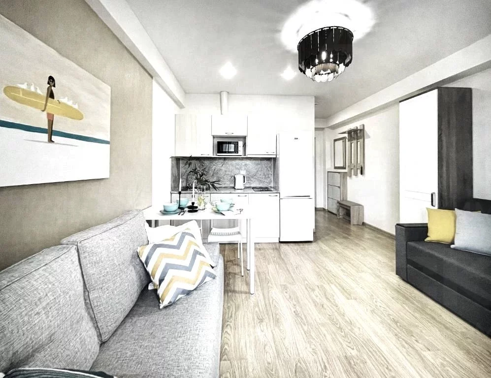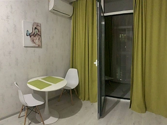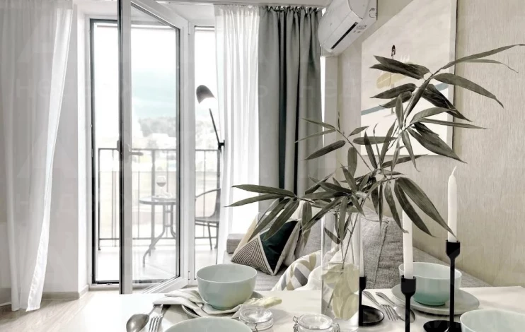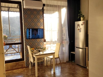 Продаю просторную однокомнатную квартиру с прекрасным видом на горы и город. Квартира с панорамными окнами и высокими потолками, состоит из кухни-гостиной и спальни, расположена в резиденция бизнес-класса, вокруг которой лес и горы, в Хостинском районе города.