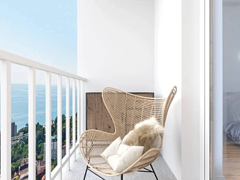 Это современный комплекс класса комфорт. Развитая инфраструктура (детсады, школы, больницы, остановки общественного транспорта, магазины) до пляжа - 500 метров! Закрытая территория, ландшафтное озеленение, парковка, 2 бассейна, сауна, фитнес центр, детский городок, батутный центр, зона барбекю.