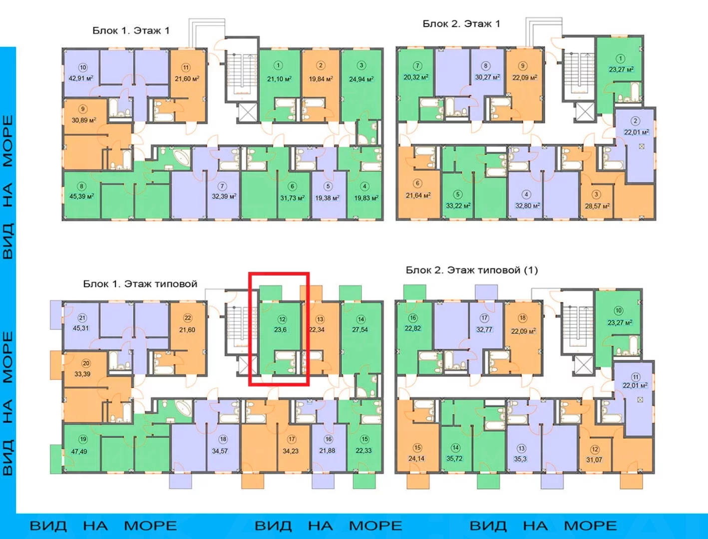 В новом доме в Сочи, район Бытха в ЖК «Моревидово» предлагается студия от инвестора.